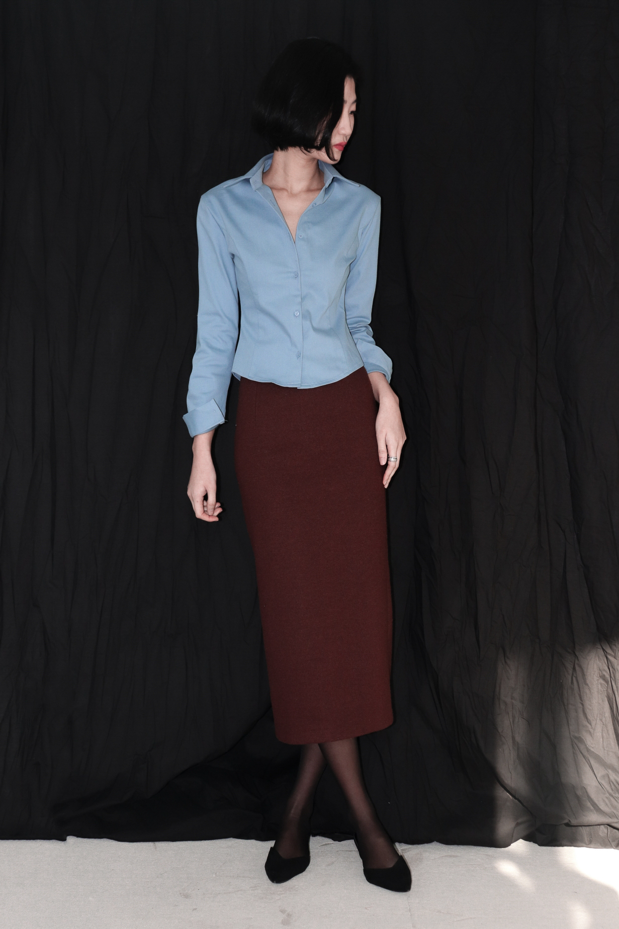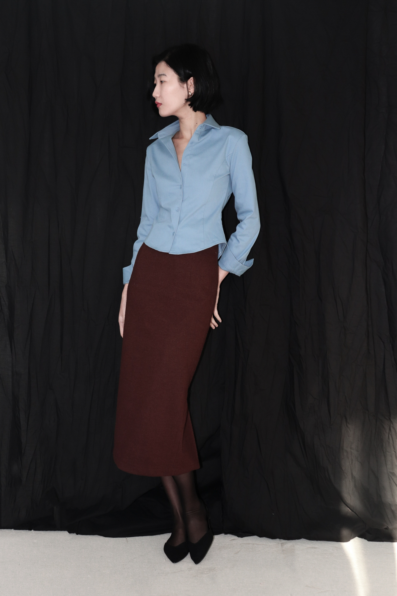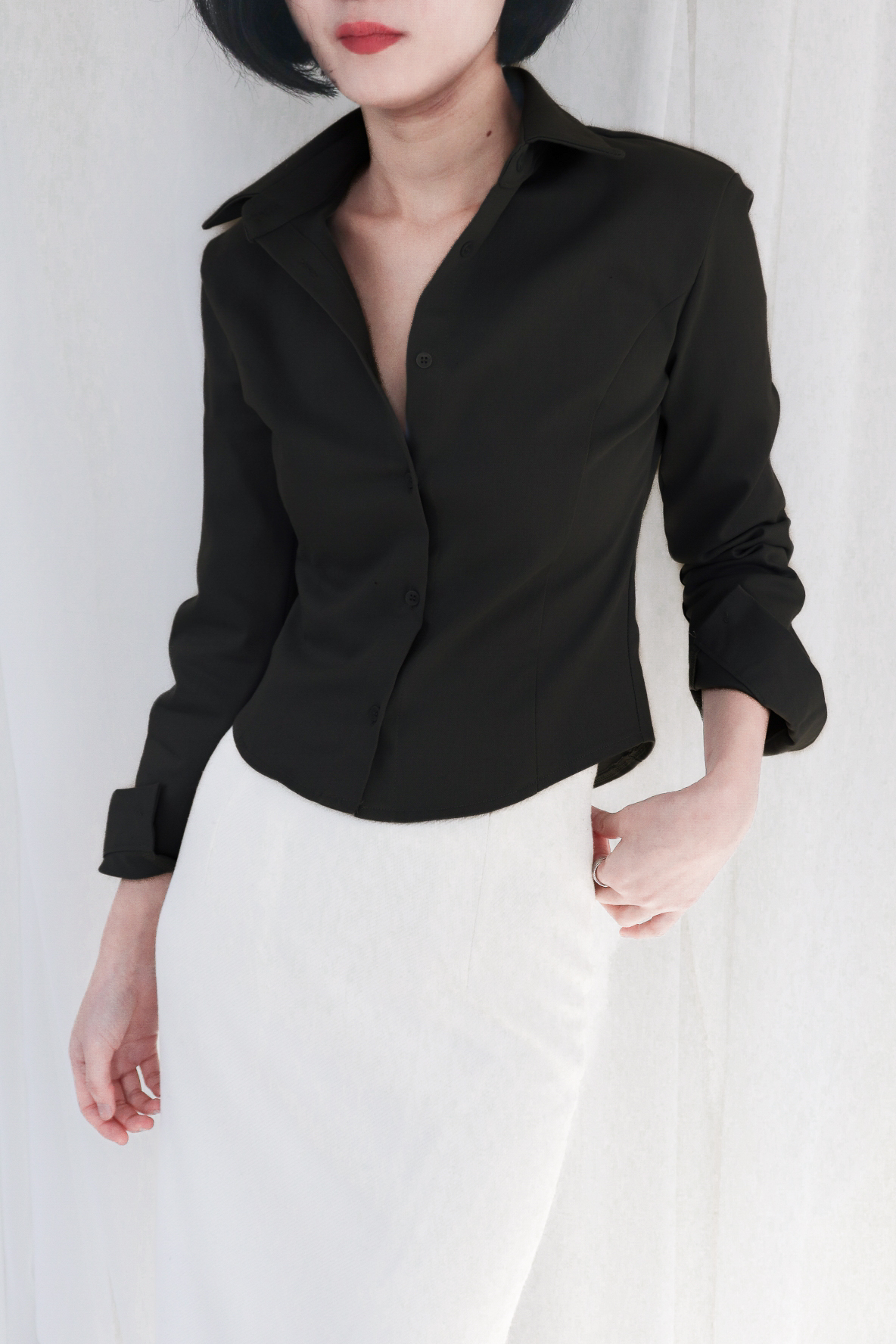 완벽하게 테일러링된 클래식 실루엣이 고급스럽고 단정한 인상을 연출합니다.