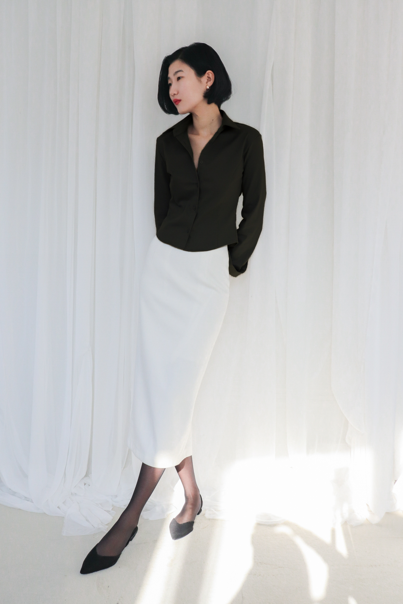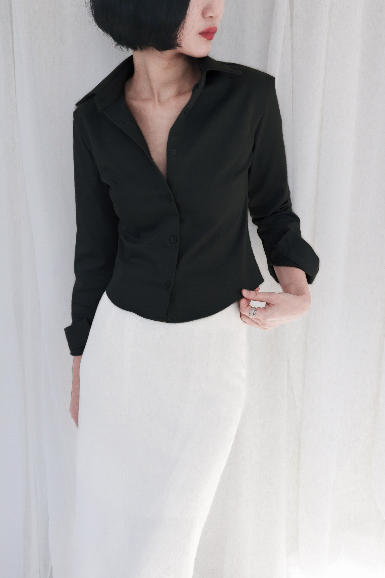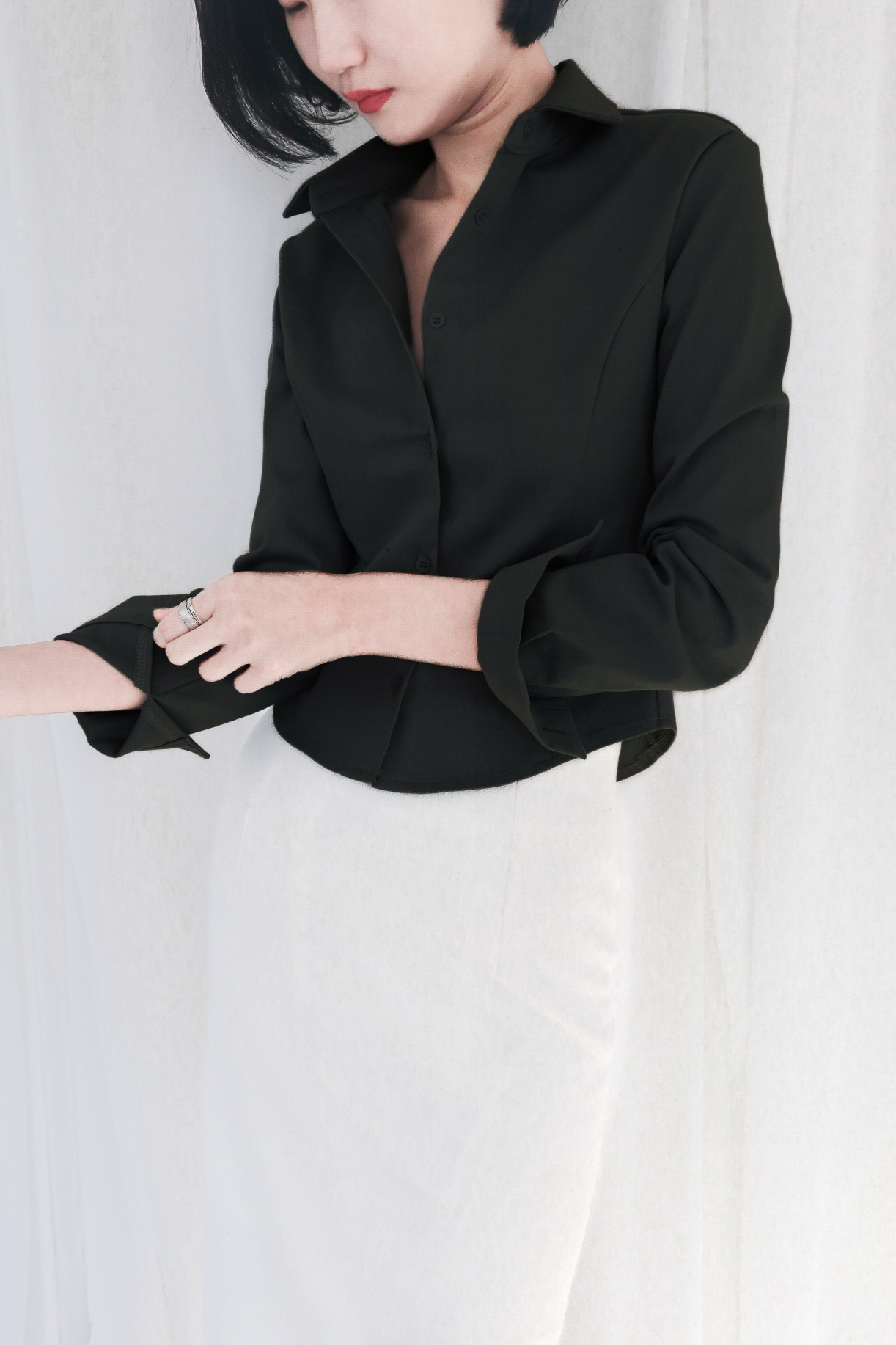 완벽하게 테일러링된 클래식 실루엣이 고급스럽고 단정한 인상을 연출합니다.