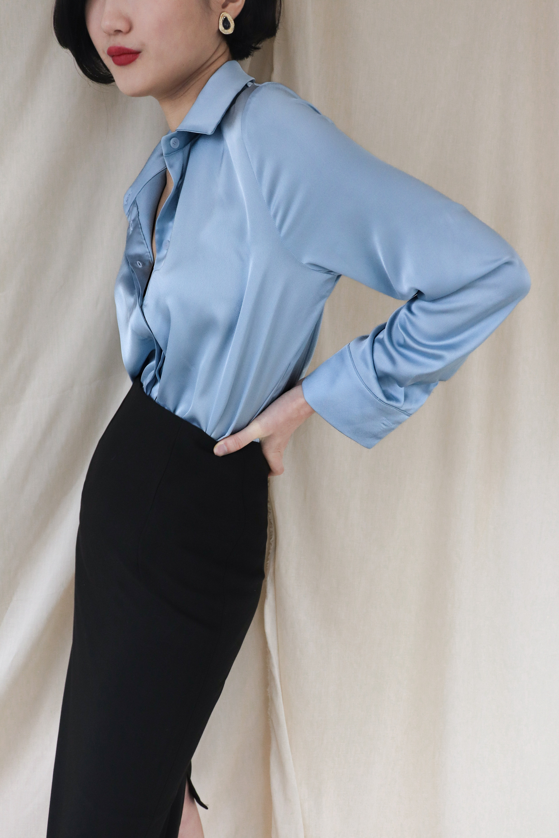 우아한 브이넥 라인과 정교하게 재단된 핏이 여성스러운 곡선을 돋보이게 합니다.