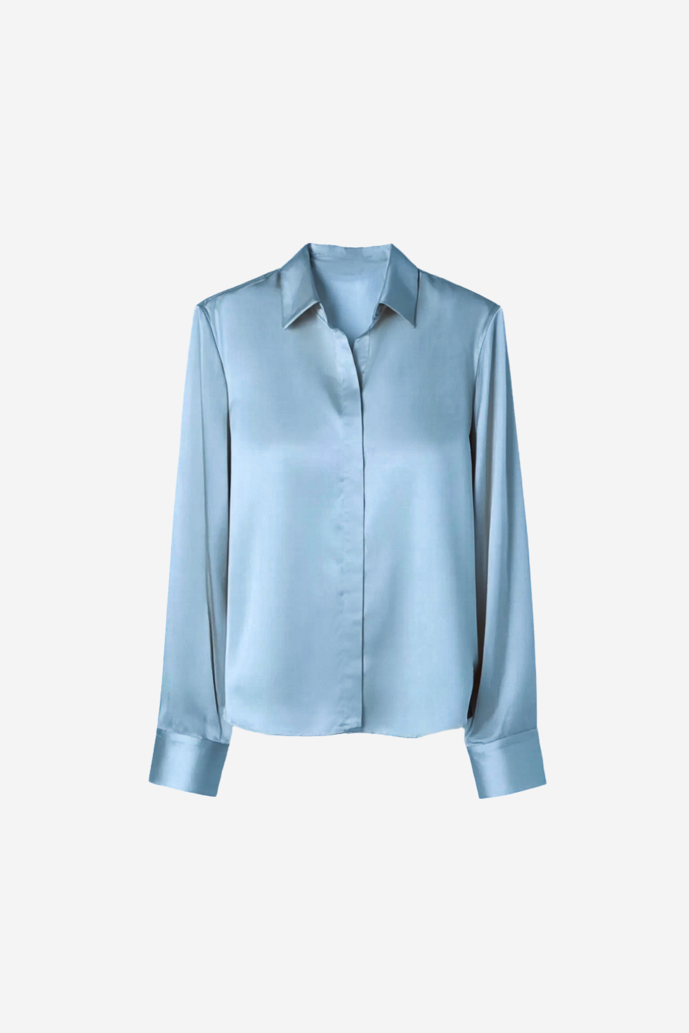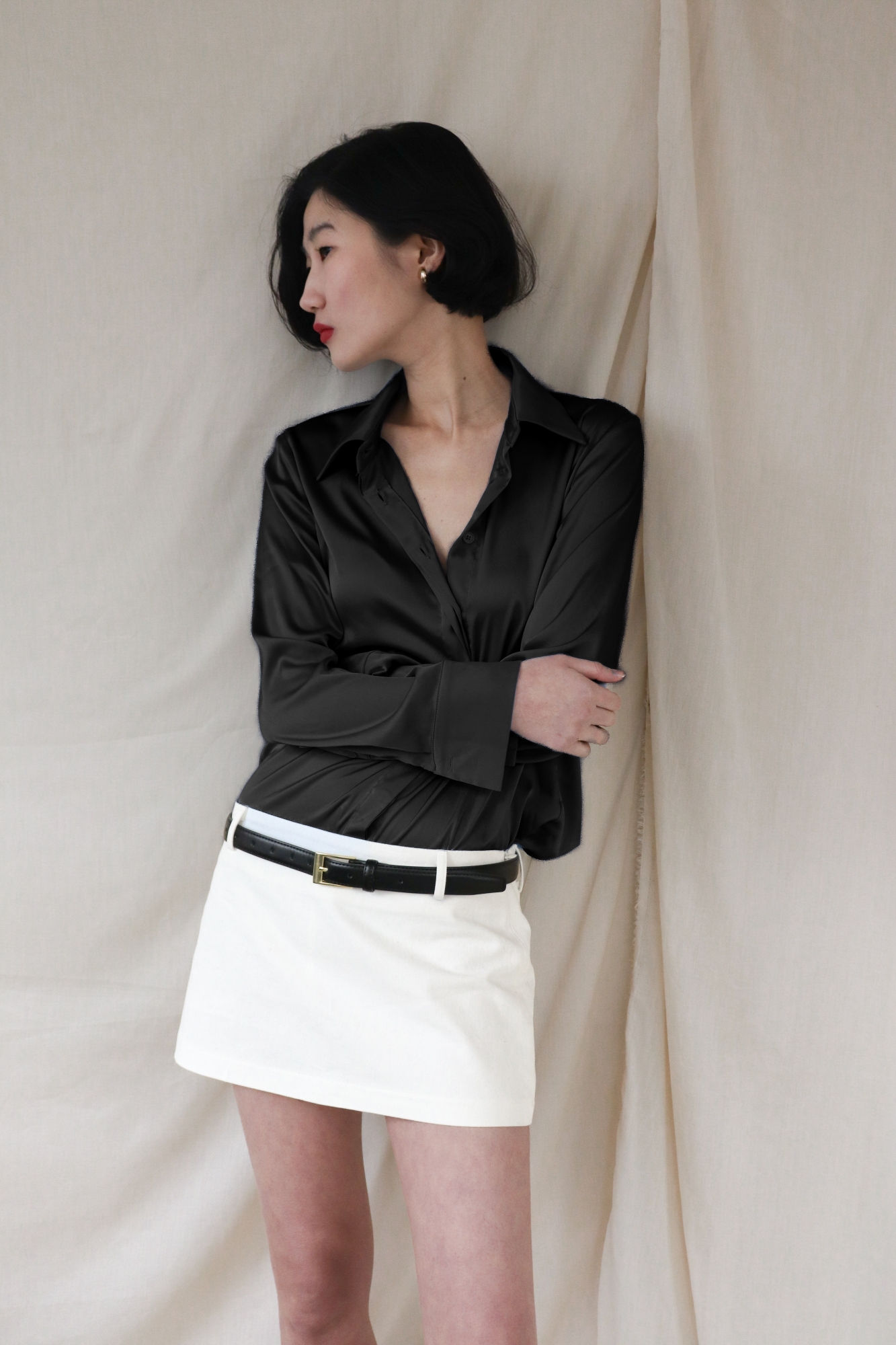 단추를 가리는 앞섶 디테일이 세련됨을 더합니다.