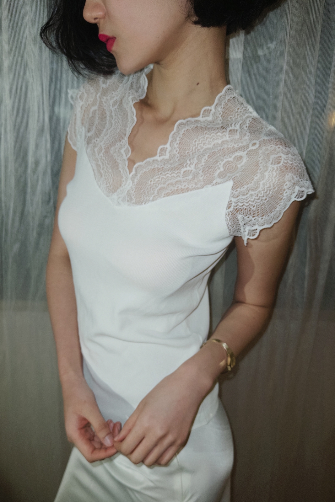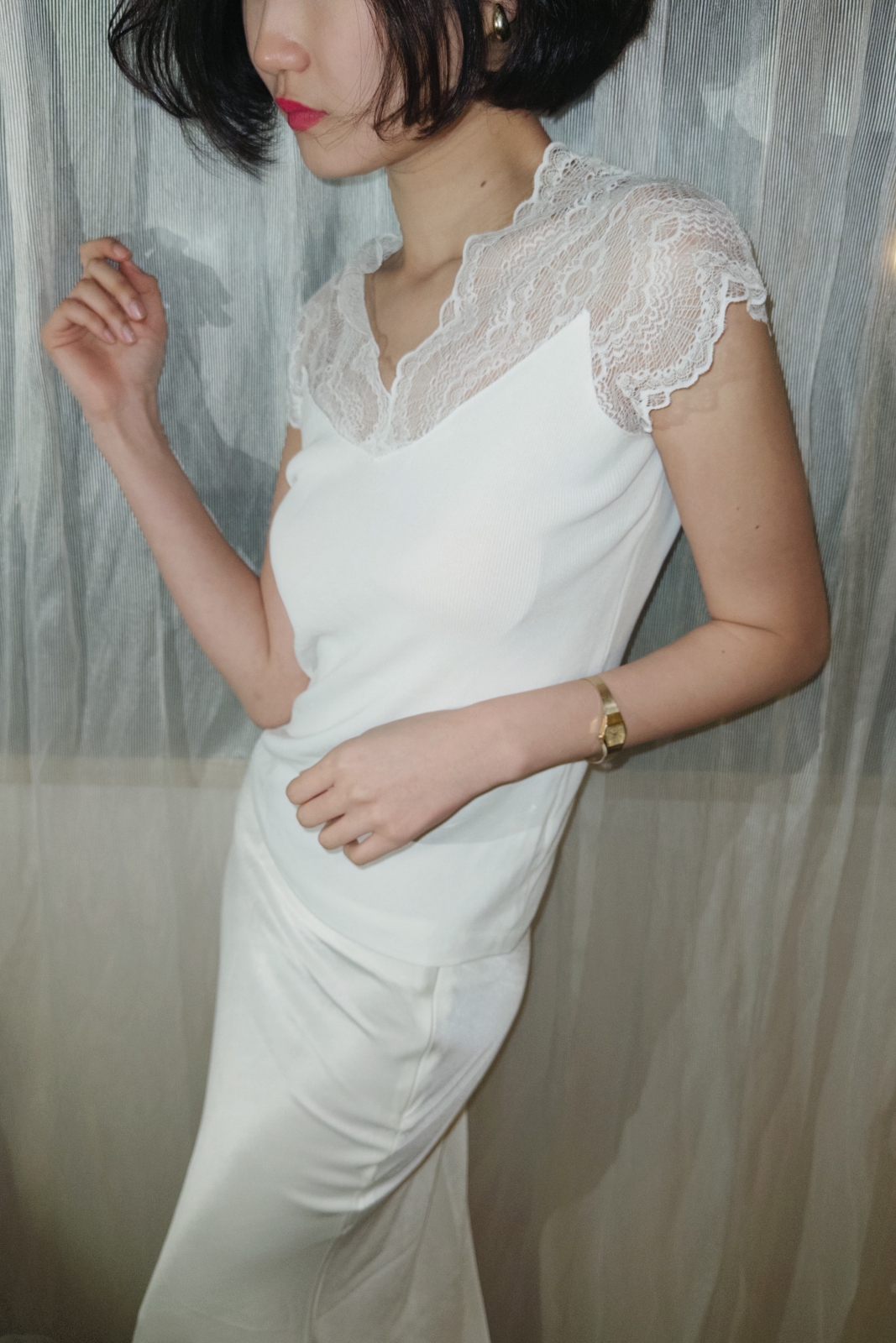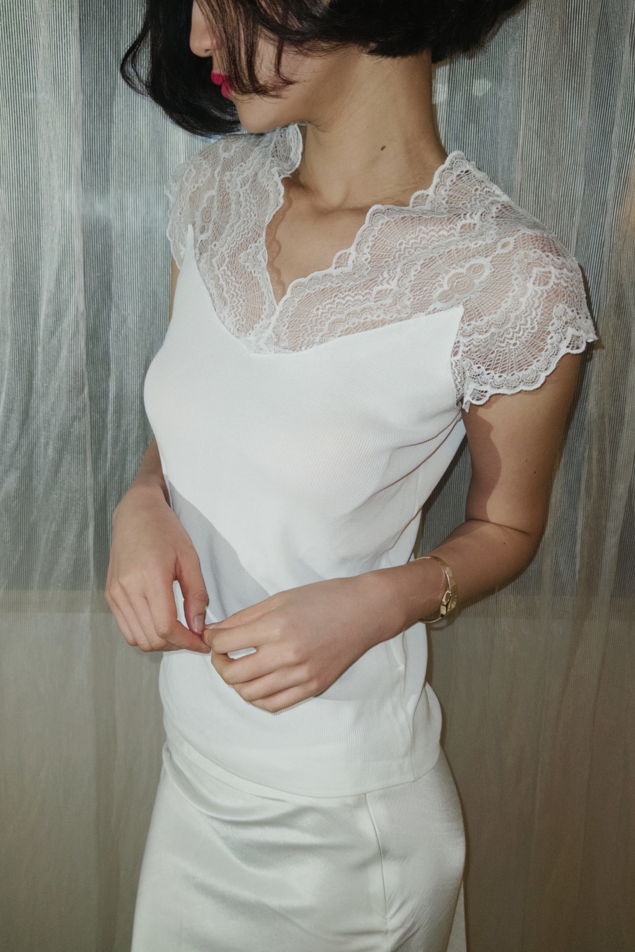 레이스 특유의 섬세한 질감은 페미닌한 무드를 더해줍니다.