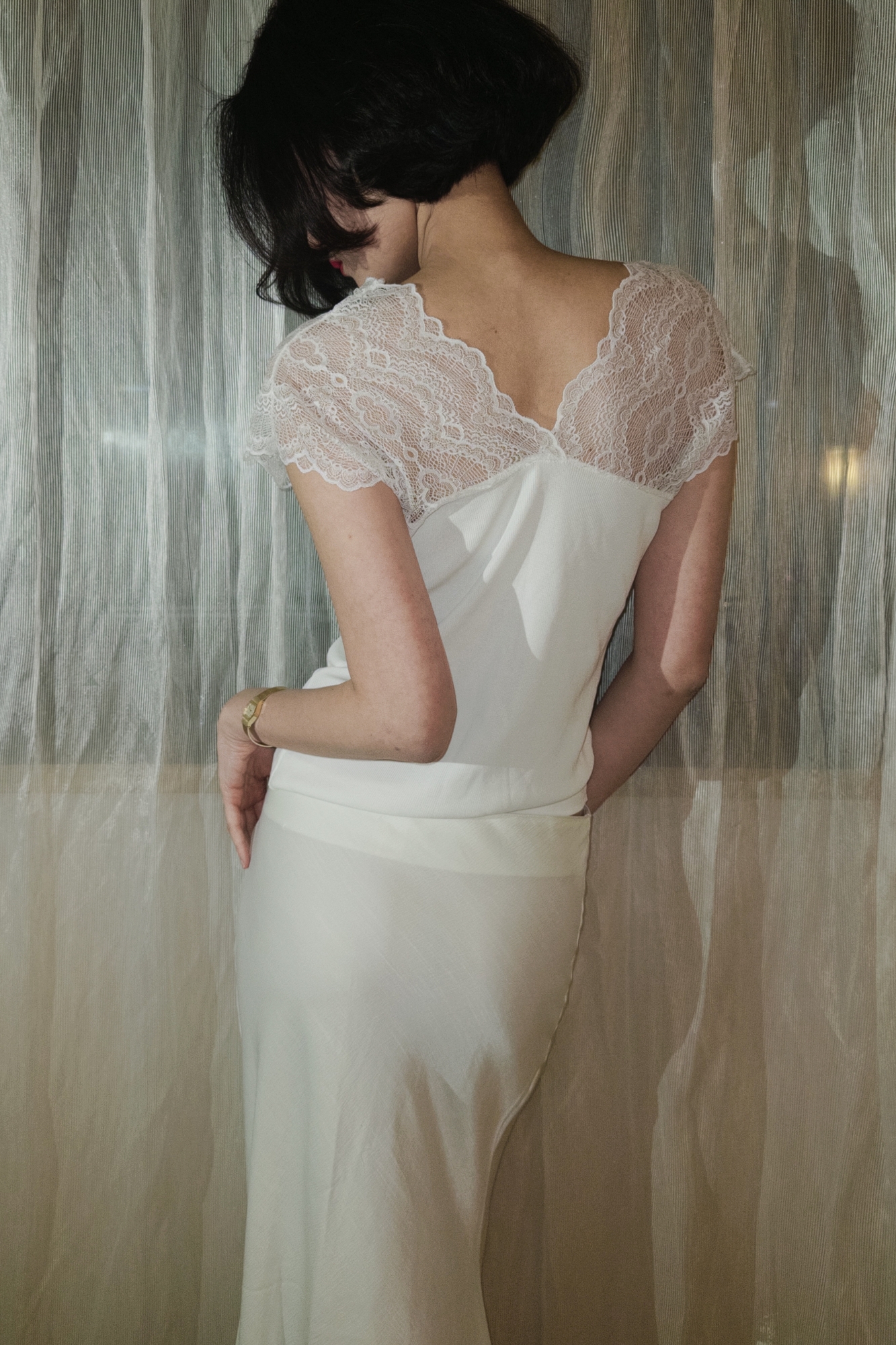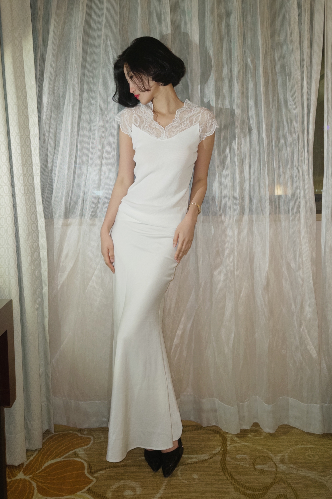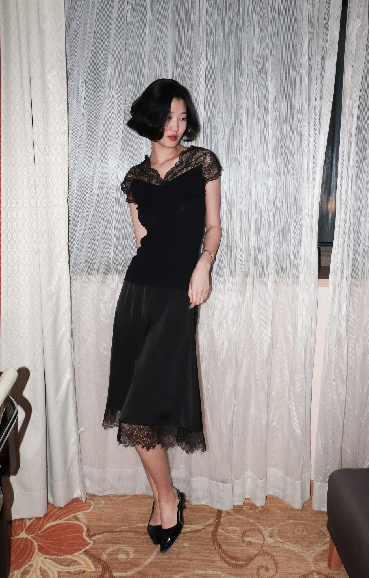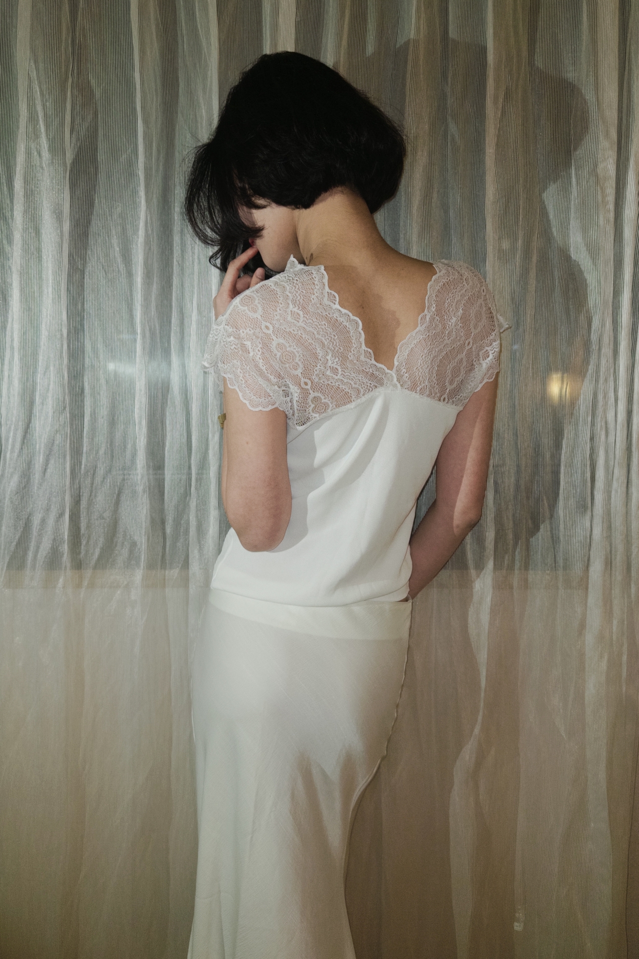 레이스 특유의 섬세한 질감은 페미닌한 무드를 더해줍니다.