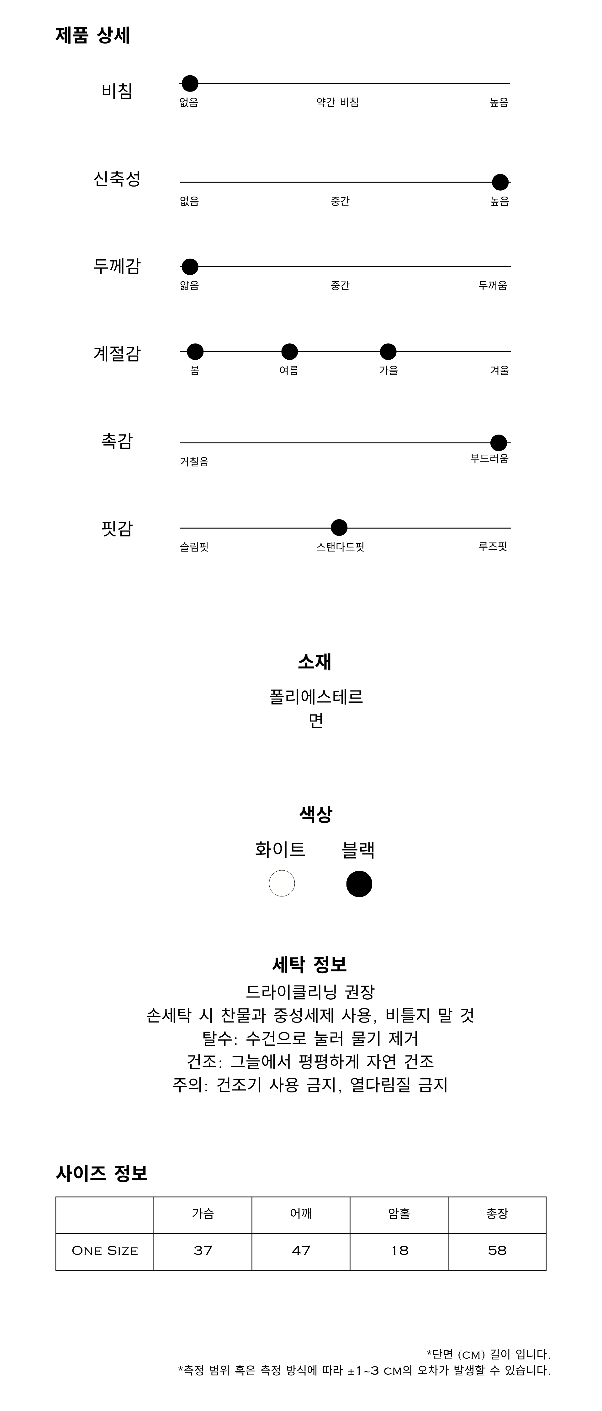 | 단면(cm) | 가슴 | 어깨 | 총장 |