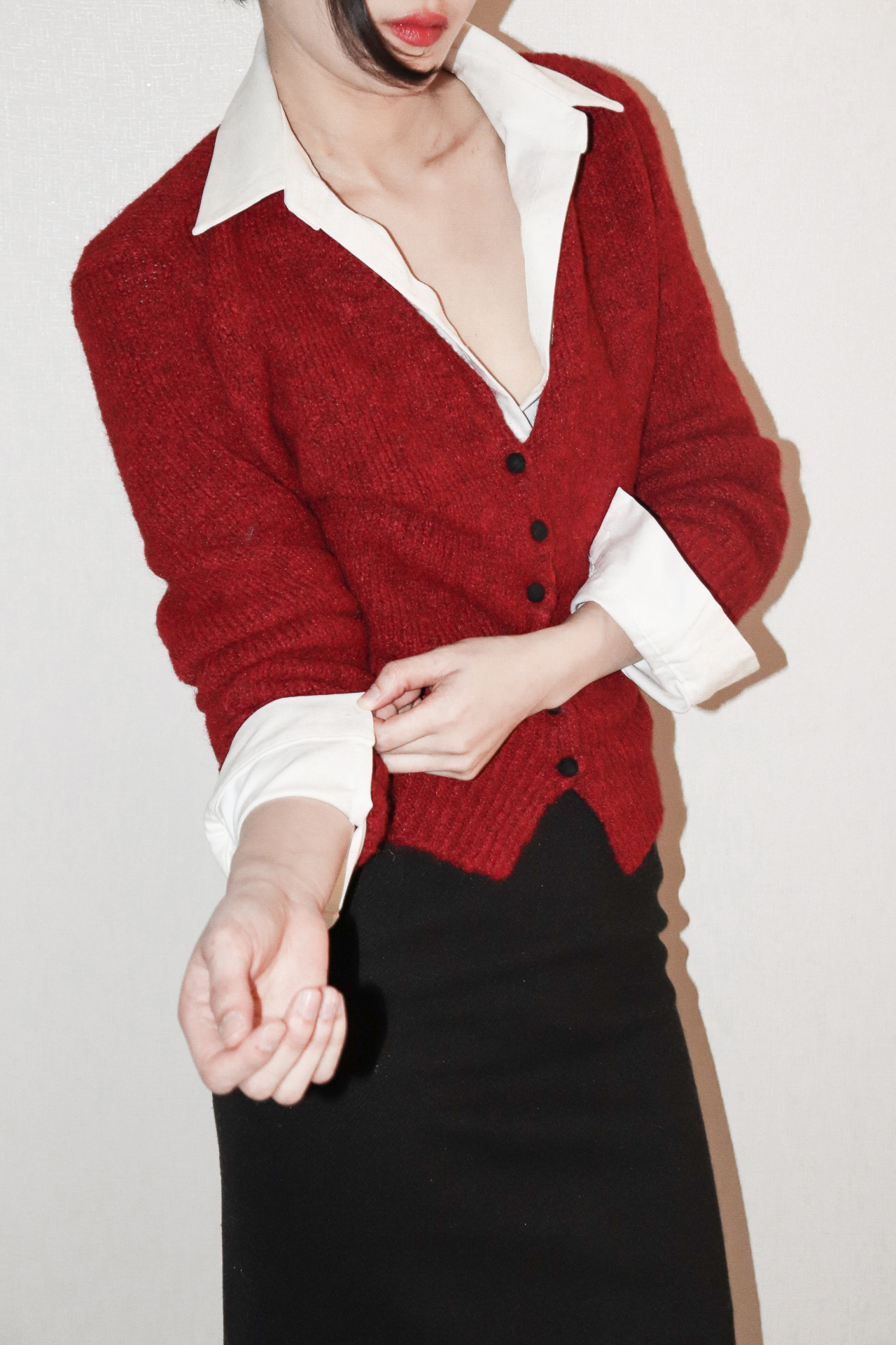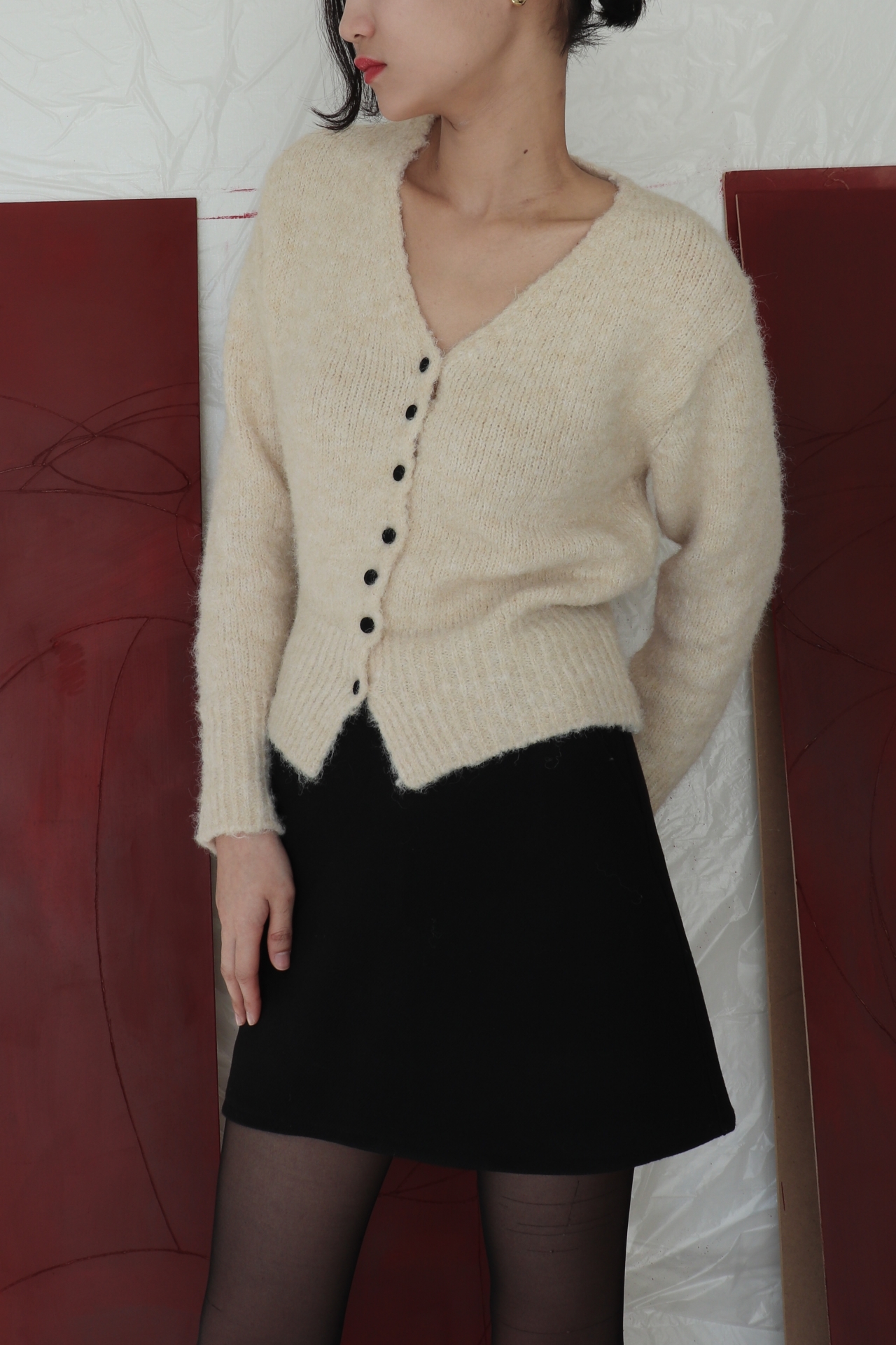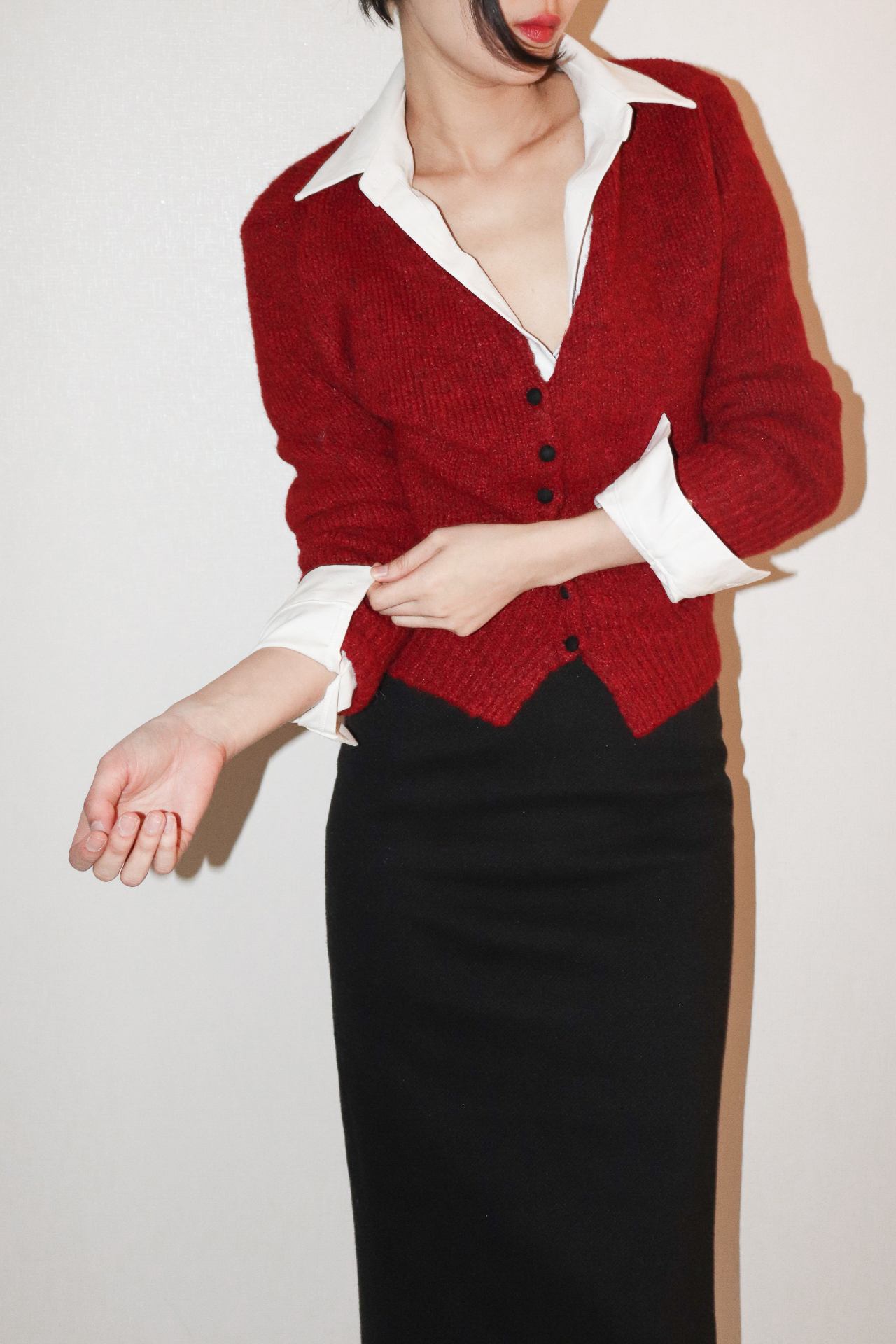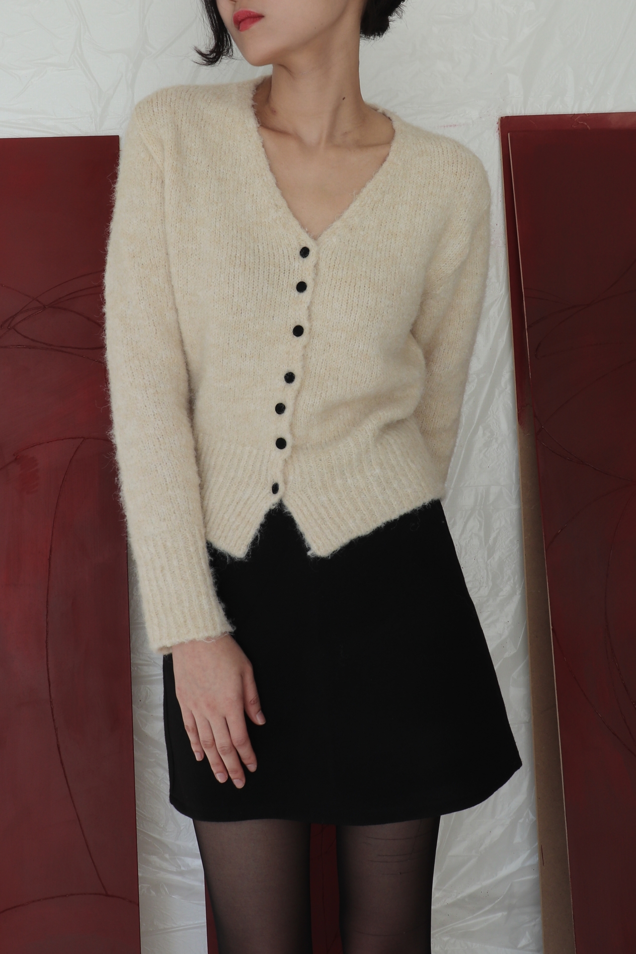 보송보송한 텍스처가 따뜻한 분위기를 만들어주는 버튼업 가디건입니다.