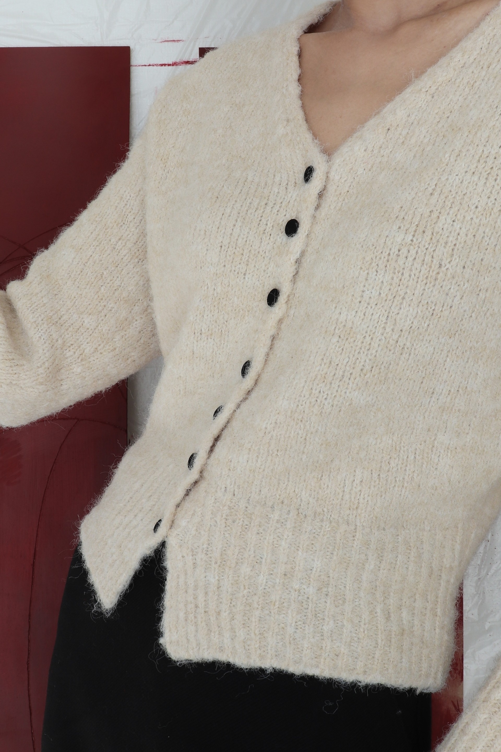 보송보송한 텍스처가 따뜻한 분위기를 만들어주는 버튼업 가디건입니다.