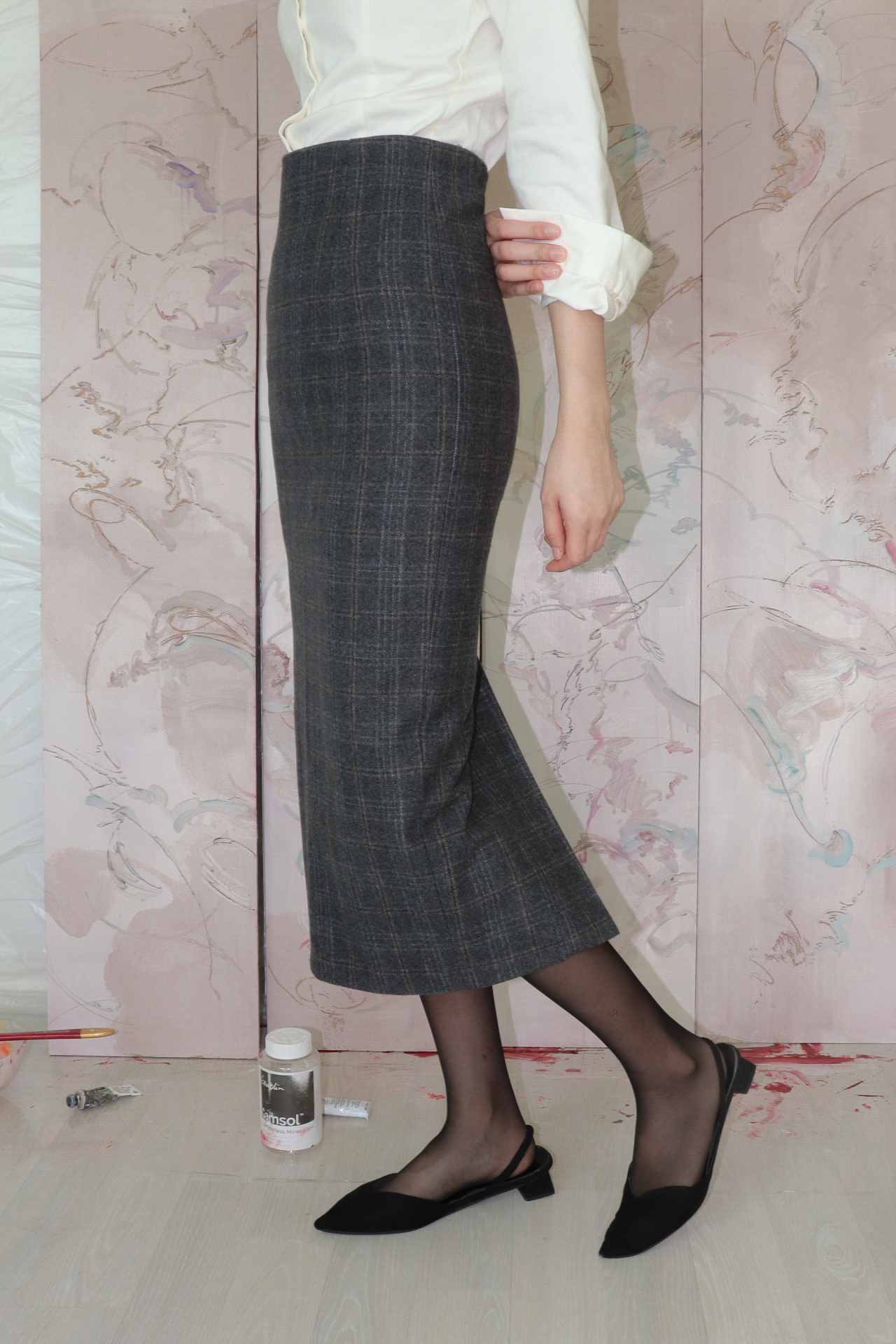 아로레의 시그니처 테일러링을 활용한 f/w 시즌 스커트.