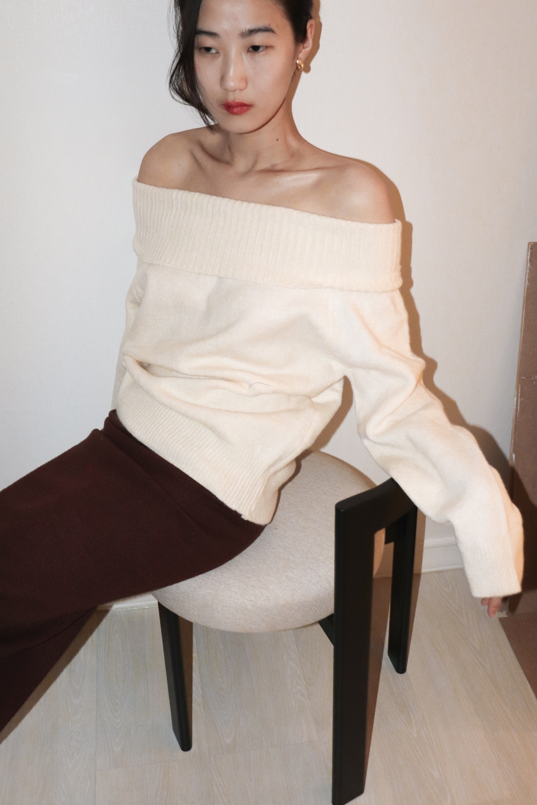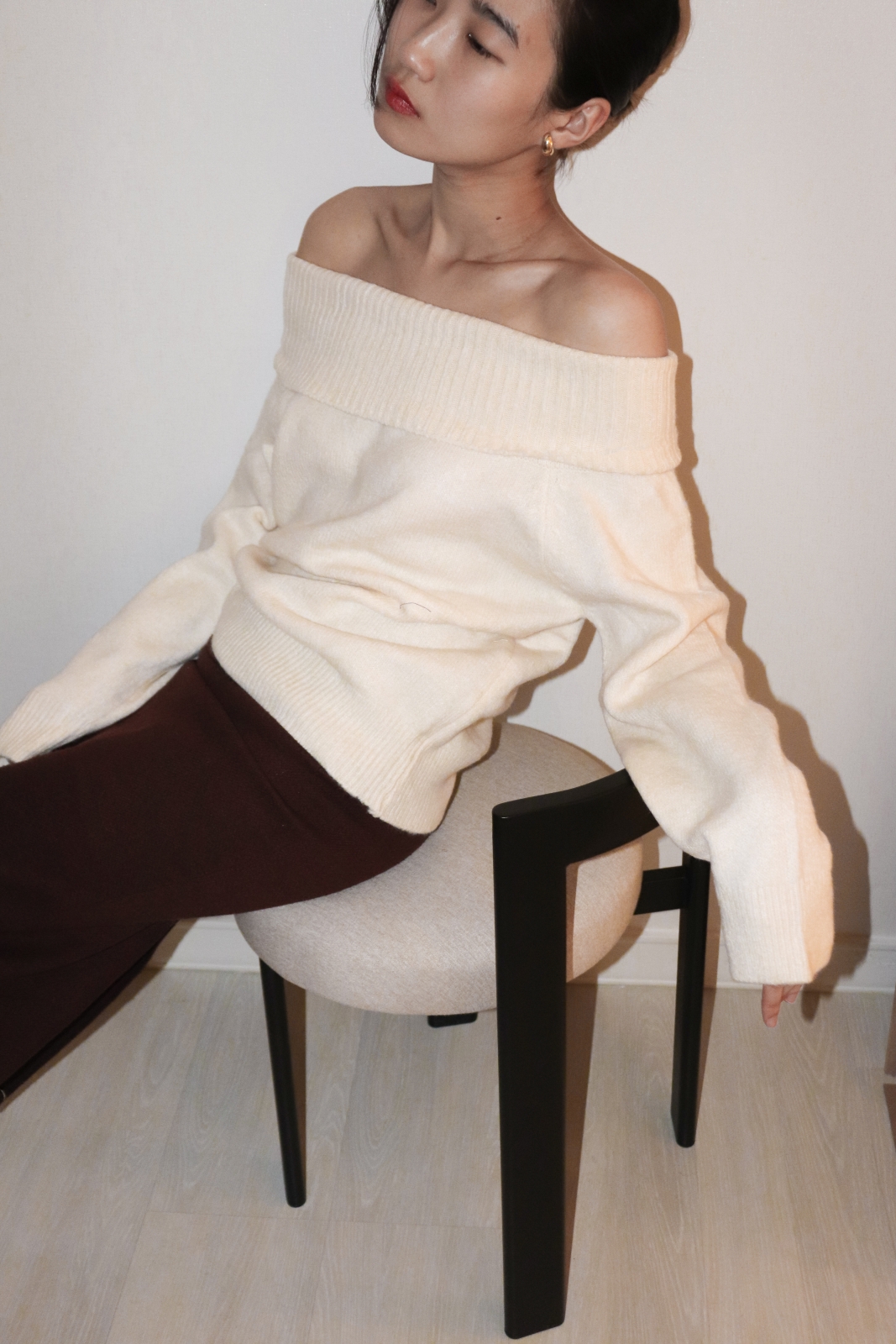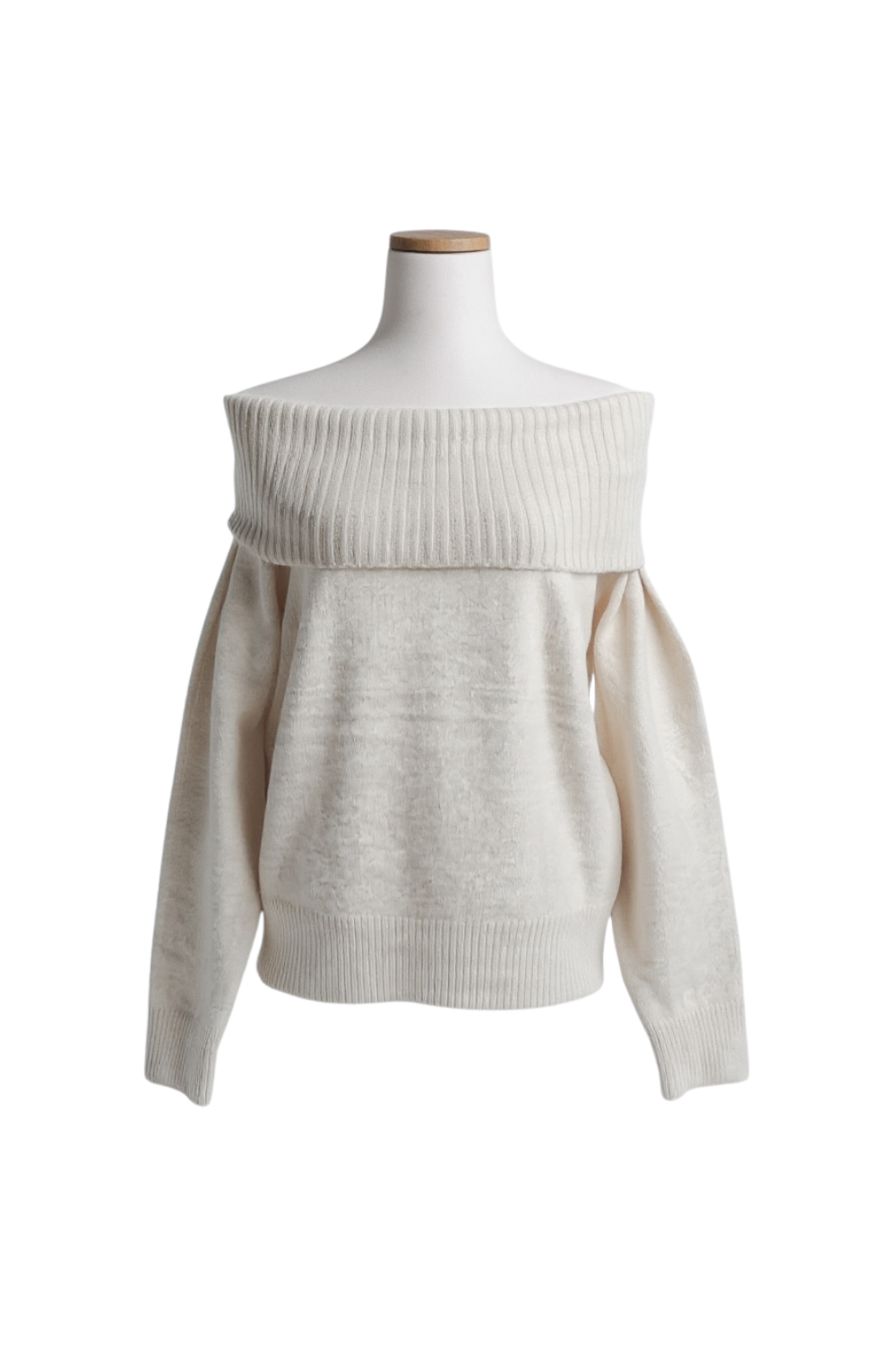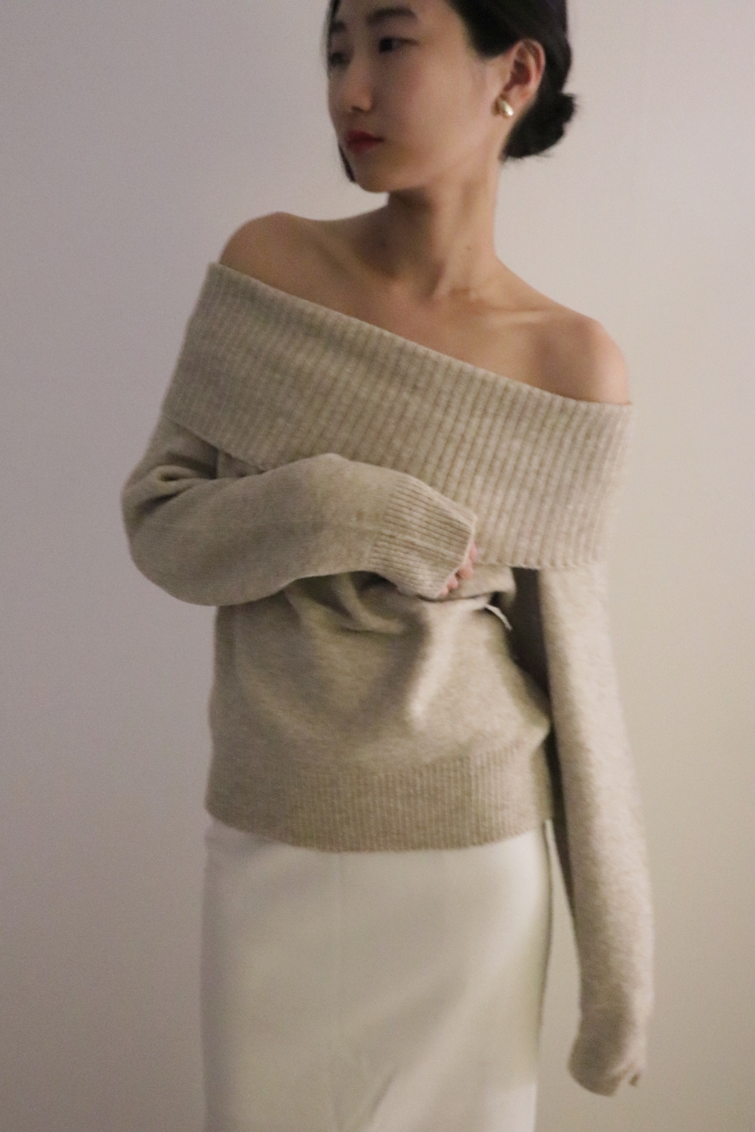 넓게 접힌 네크라인은 스타일에 따라 터틀넥 또는 오프숄더로 연출 가능해 하나의 아이템으로 전혀 다른 두 가지 무드를 즐길 수 있습니다.