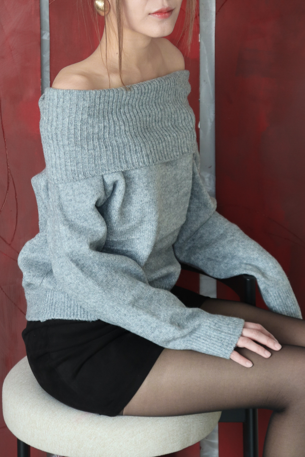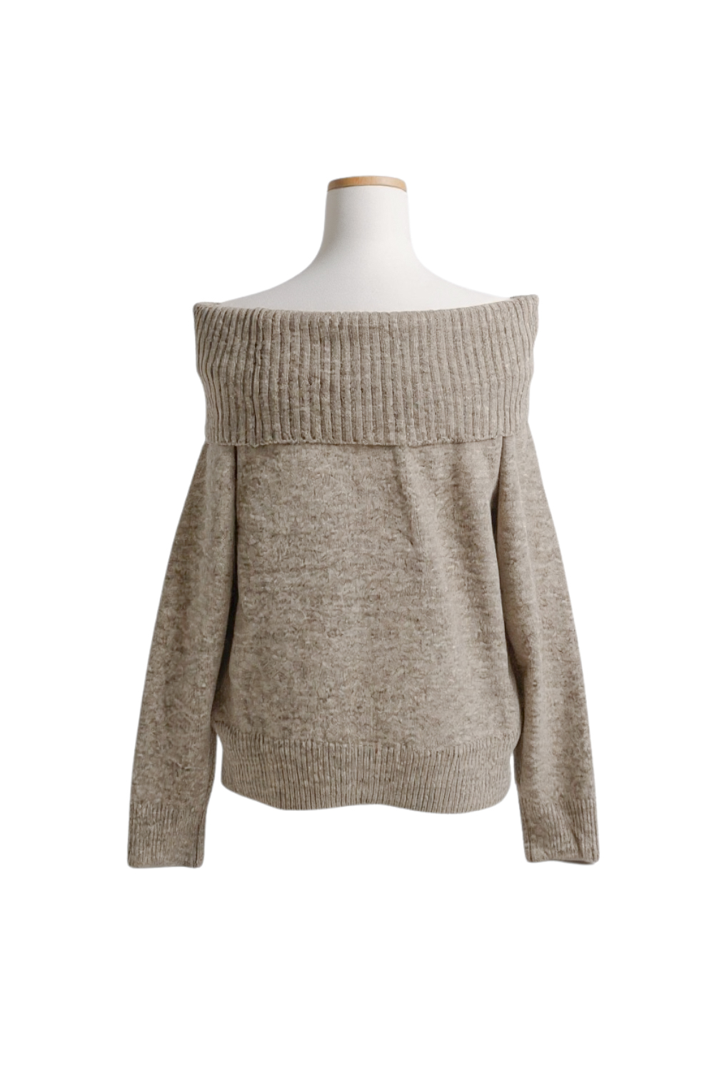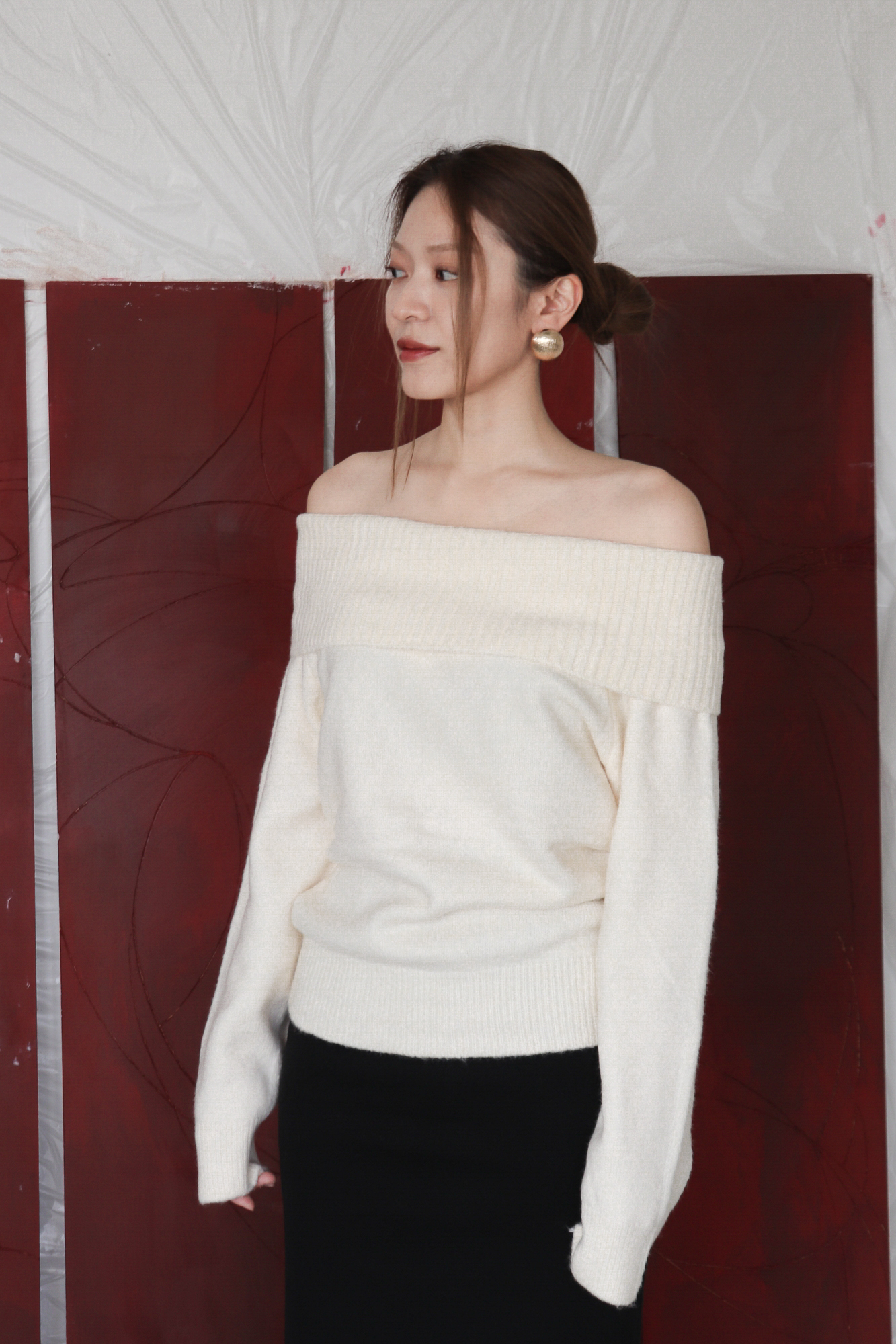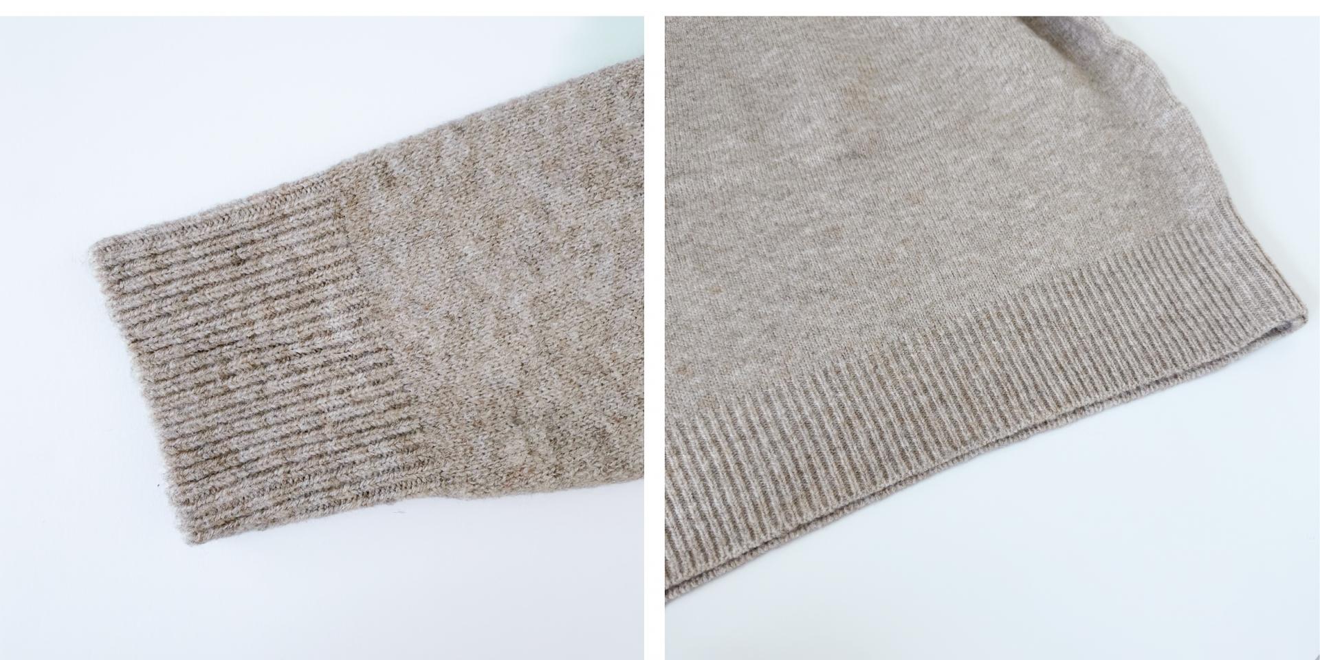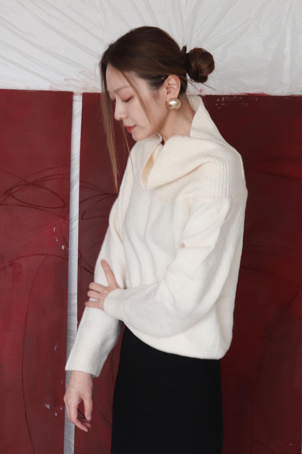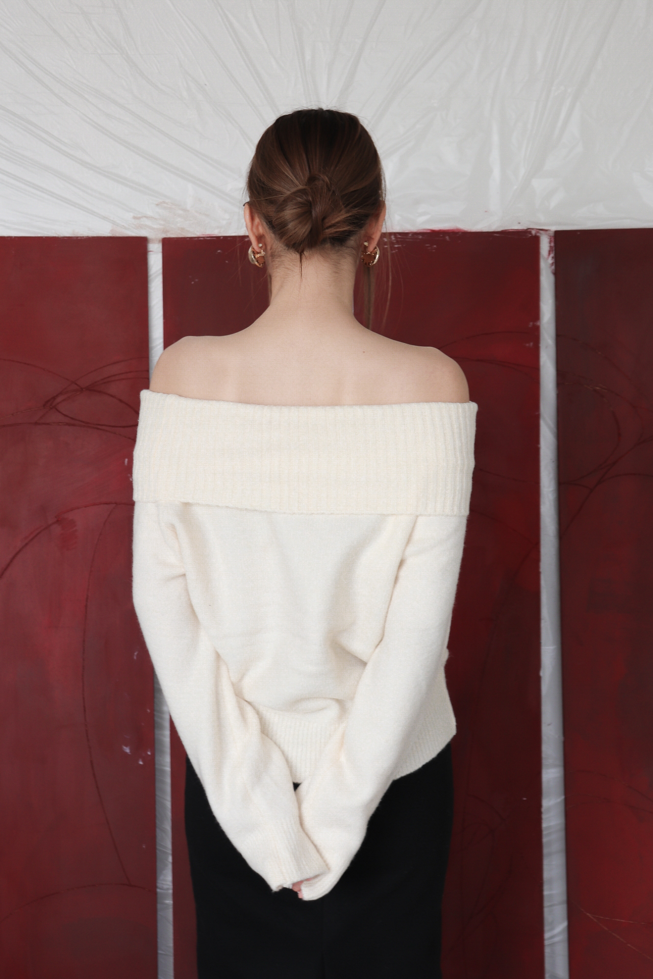 넓게 접힌 네크라인은 스타일에 따라 터틀넥 또는 오프숄더로 연출 가능해 하나의 아이템으로 전혀 다른 두 가지 무드를 즐길 수 있습니다.