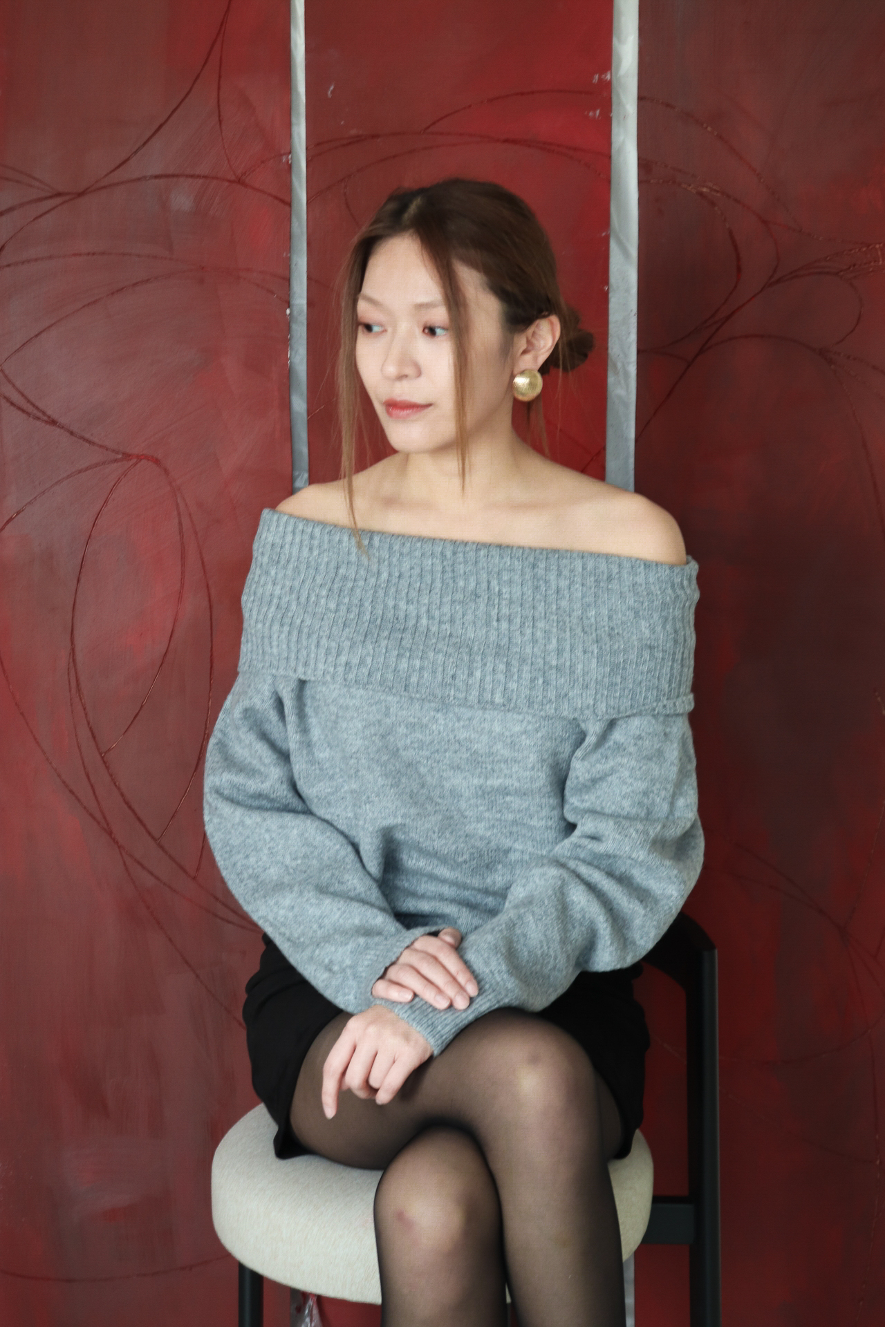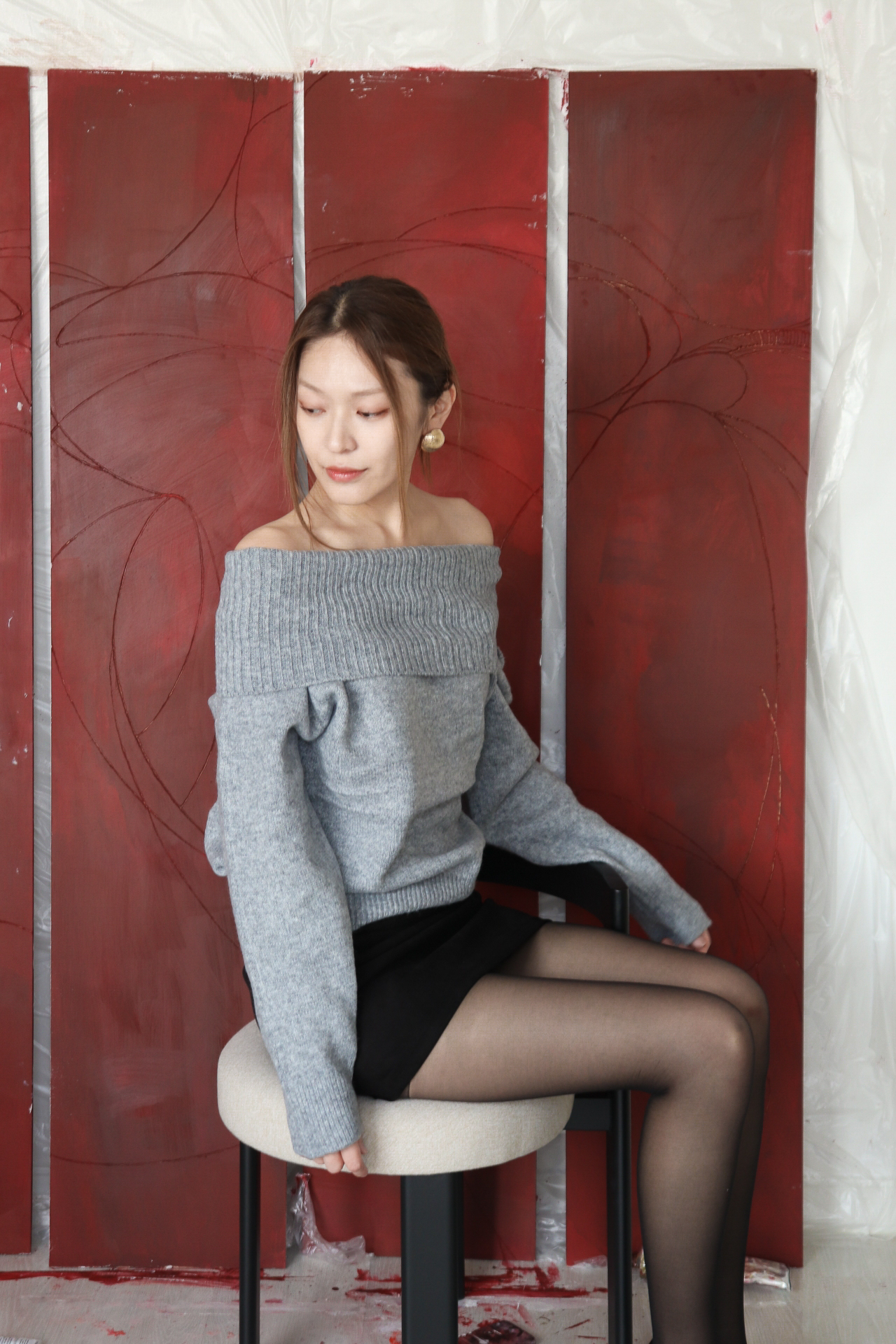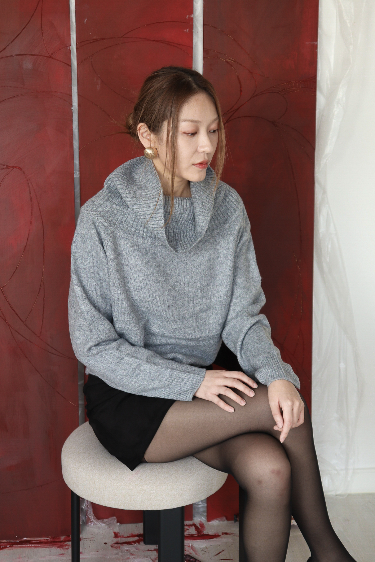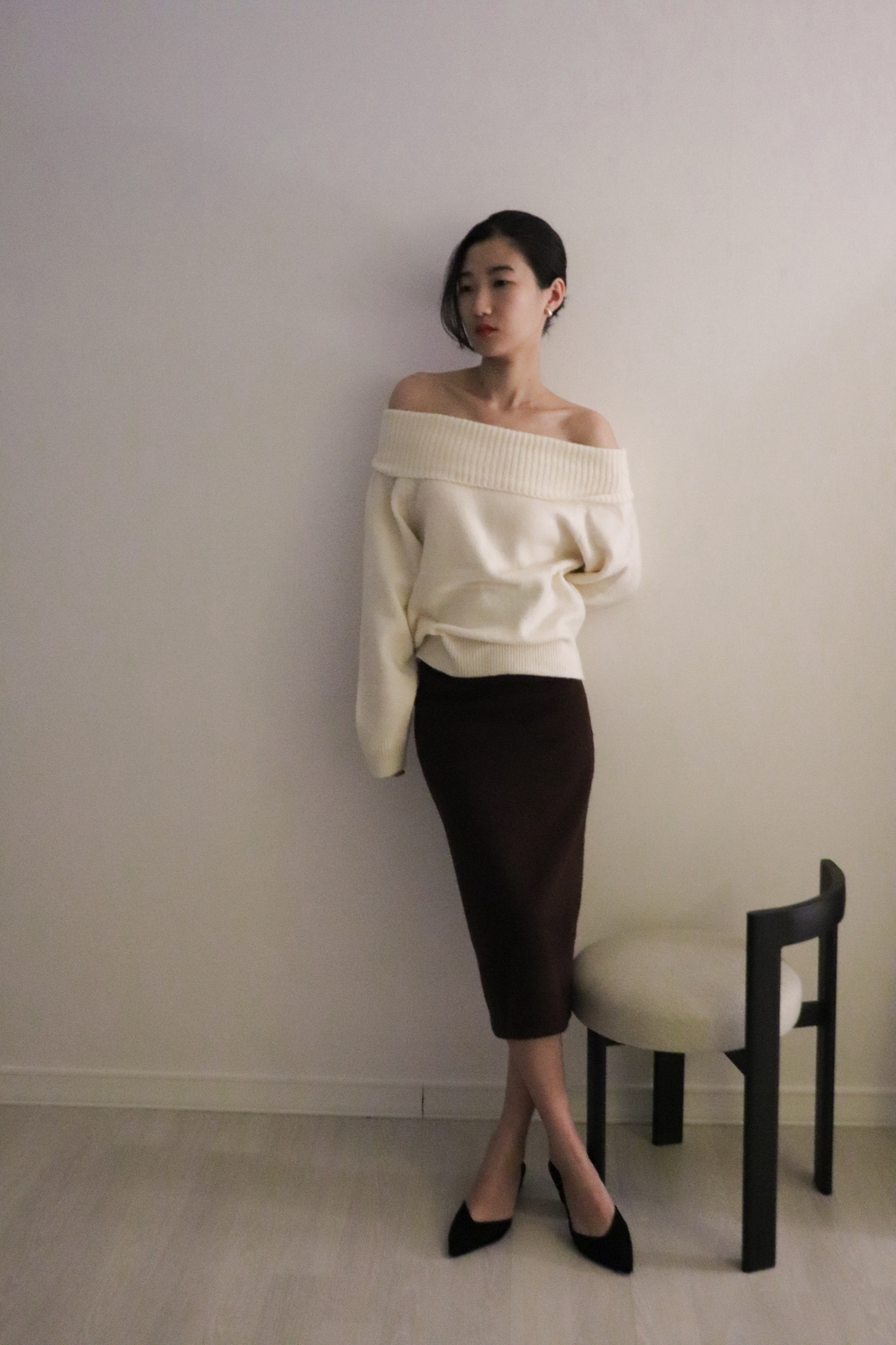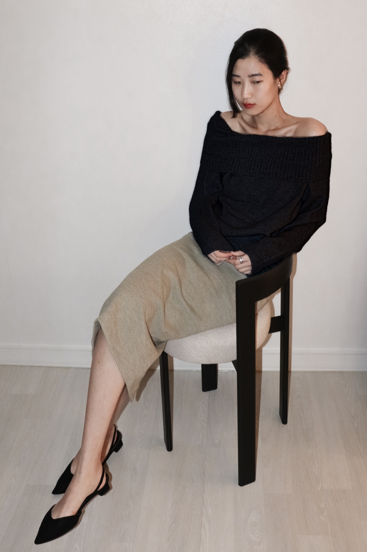 넓게 접힌 네크라인은 스타일에 따라 터틀넥 또는 오프숄더로 연출 가능해 하나의 아이템으로 전혀 다른 두 가지 무드를 즐길 수 있습니다.