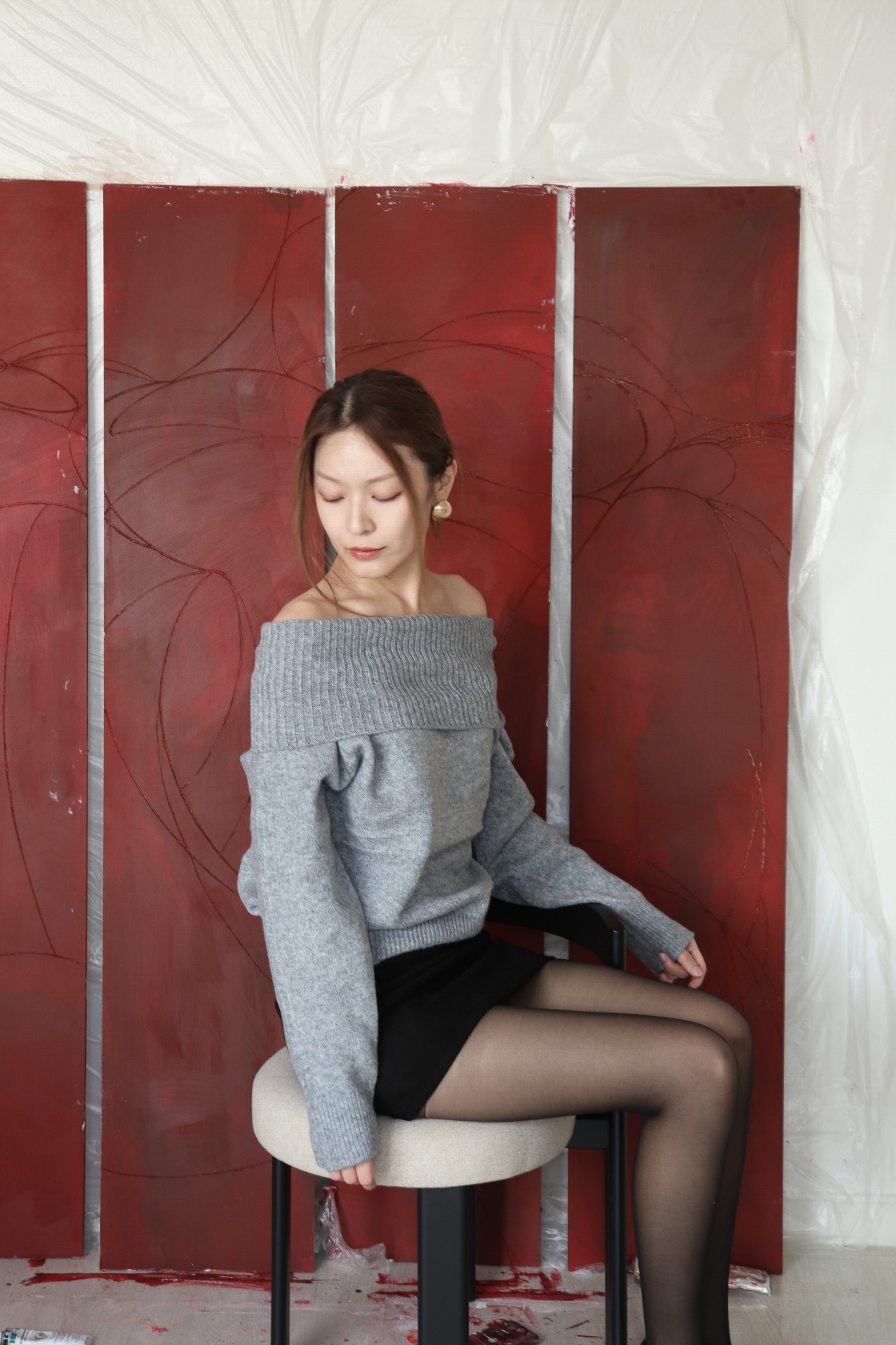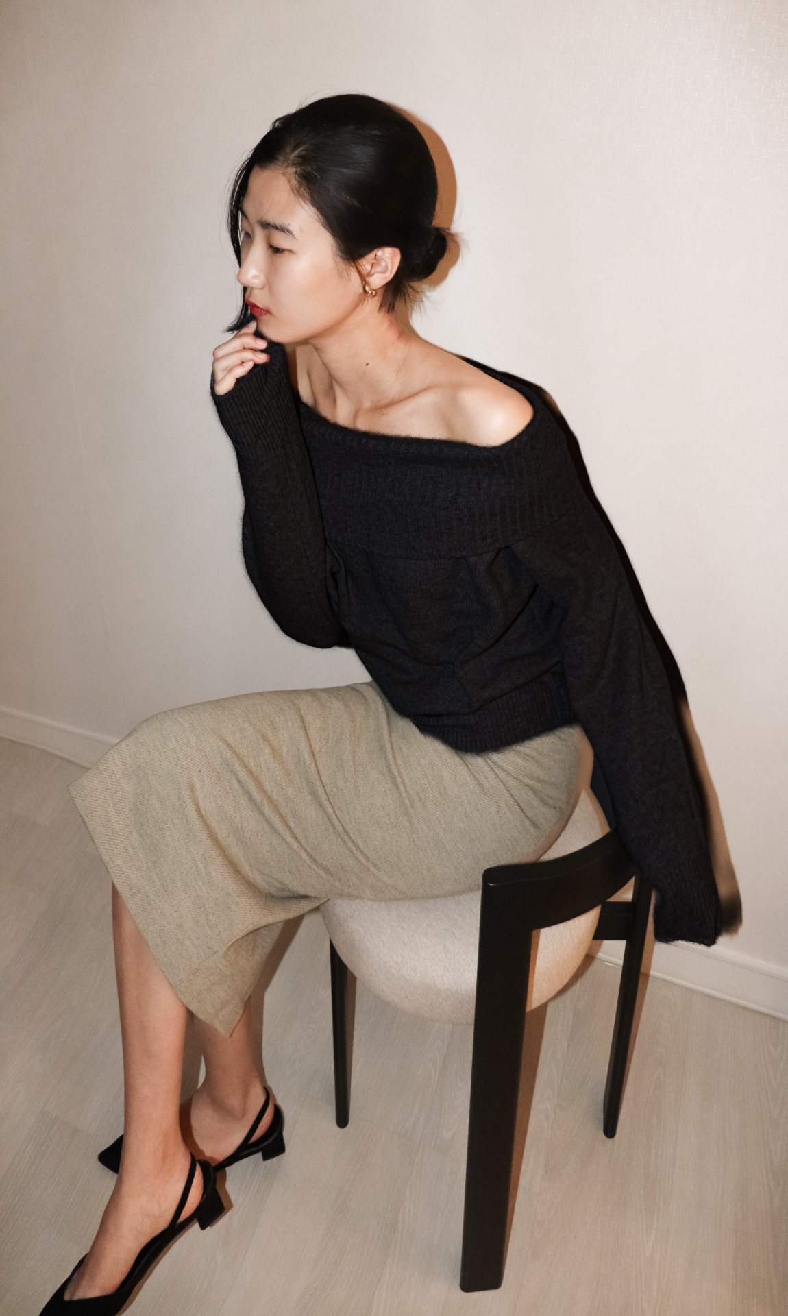 여유로운 실루엣이 몸을 포근하게 감싸며, 은은한 여리함을 강조합니다.