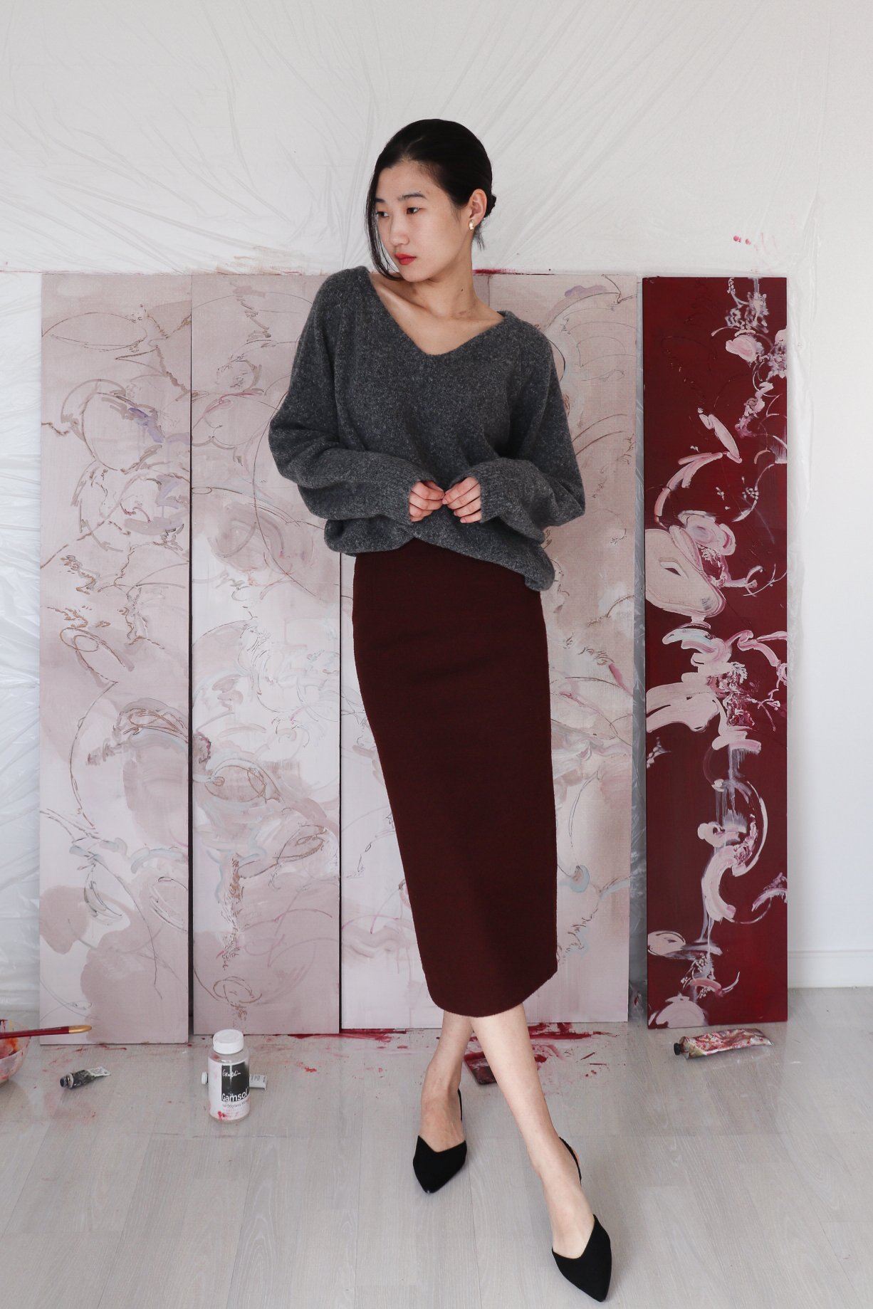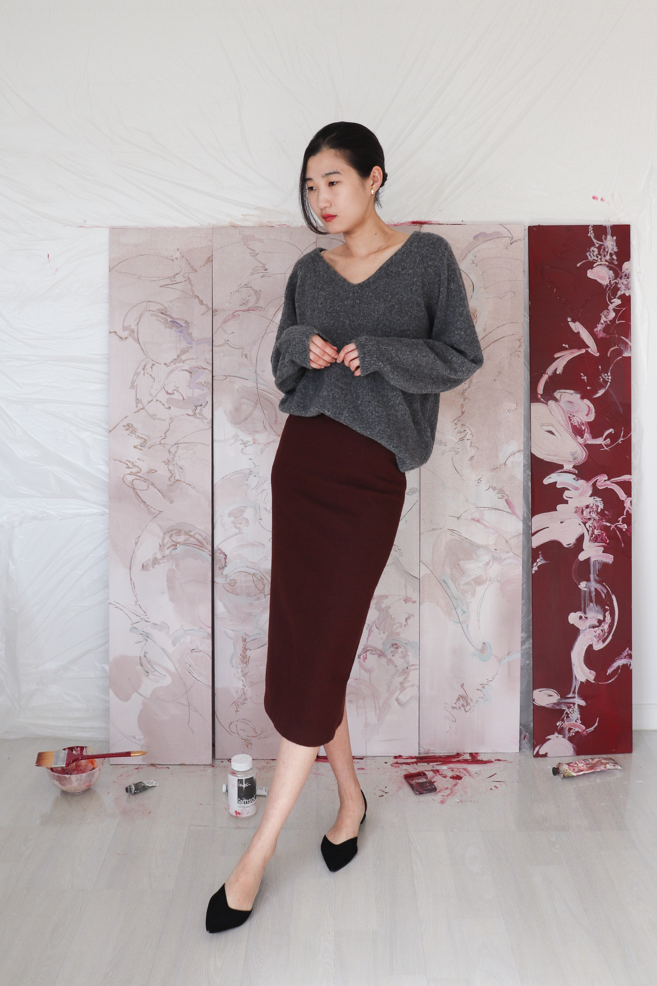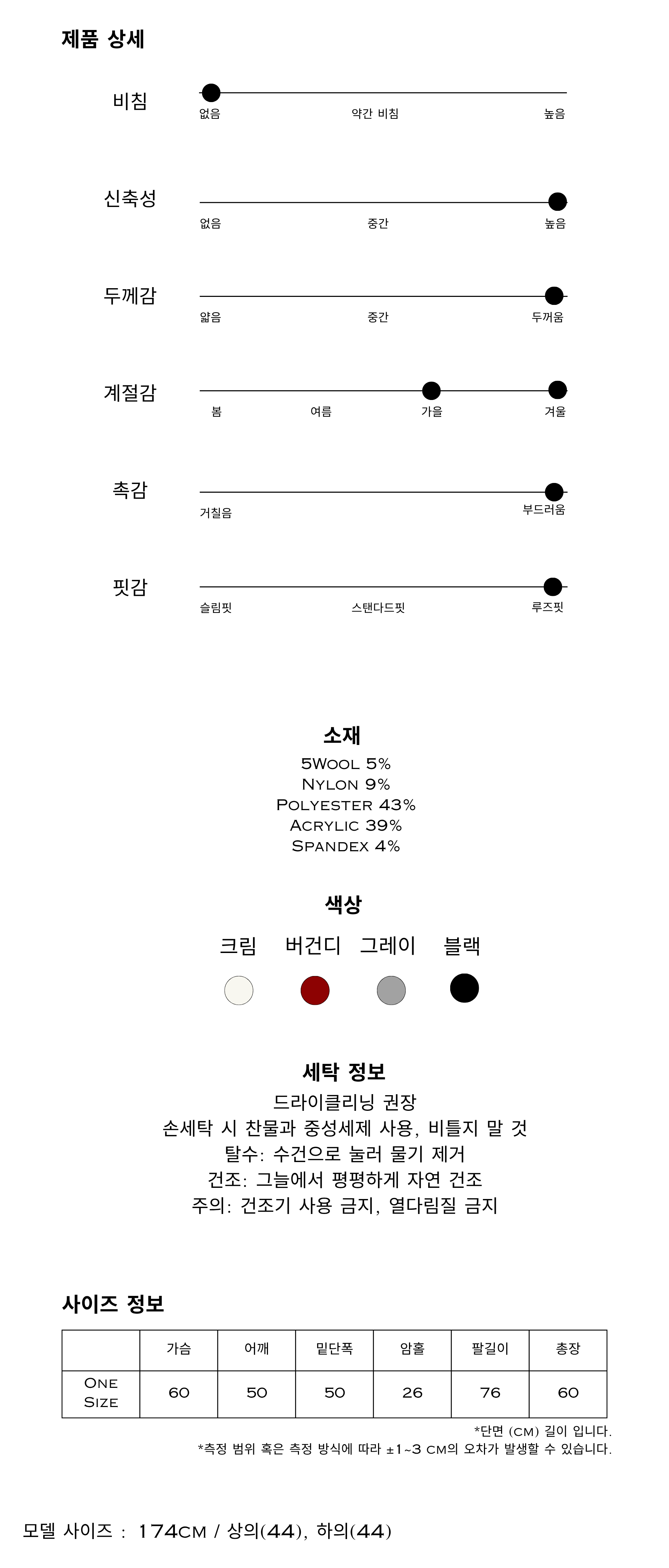 색상 : 크림, 버건디, 그레이, 블랙