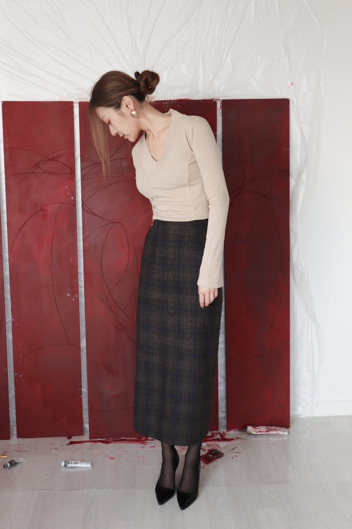 아로레의 시그니처 테일러링을 활용한 f/w 시즌 스커트.